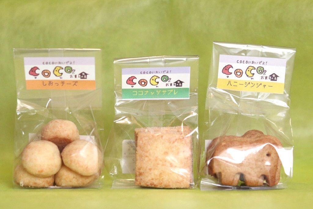 ころっとした形が可愛いチーズクッキー、フワッとした後味が特徴のココナッツクッキー、形だけでなく見た目も楽しめるジンジャークッキー。
